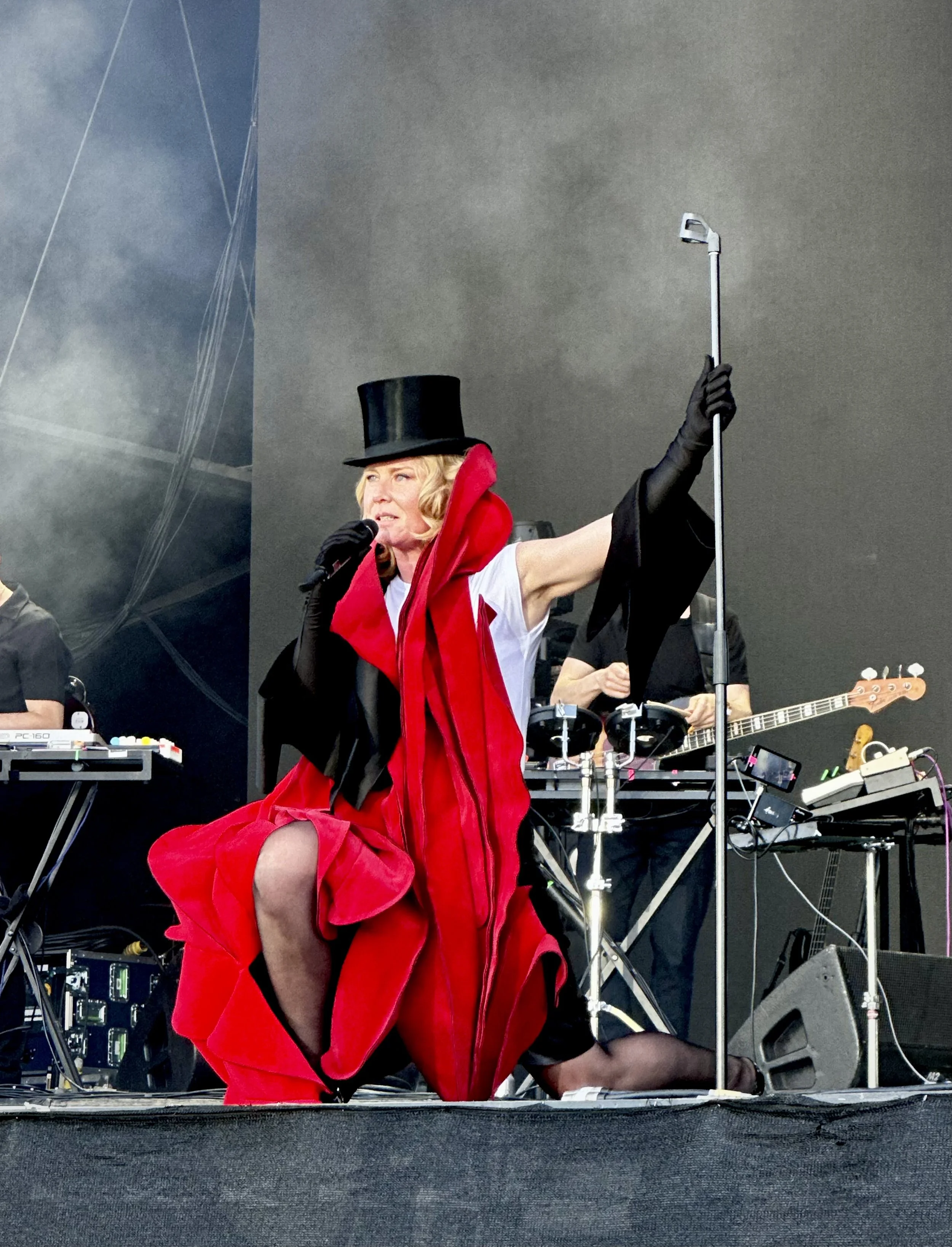 Effortlessly relatable with a gorgeous voice and warm stage presence. She laughed at her own wardrobe choice (fur coat with some underboob action on the hottest day of the year) making for a funny, self-aware moment, though the set itself never quite found its spark.